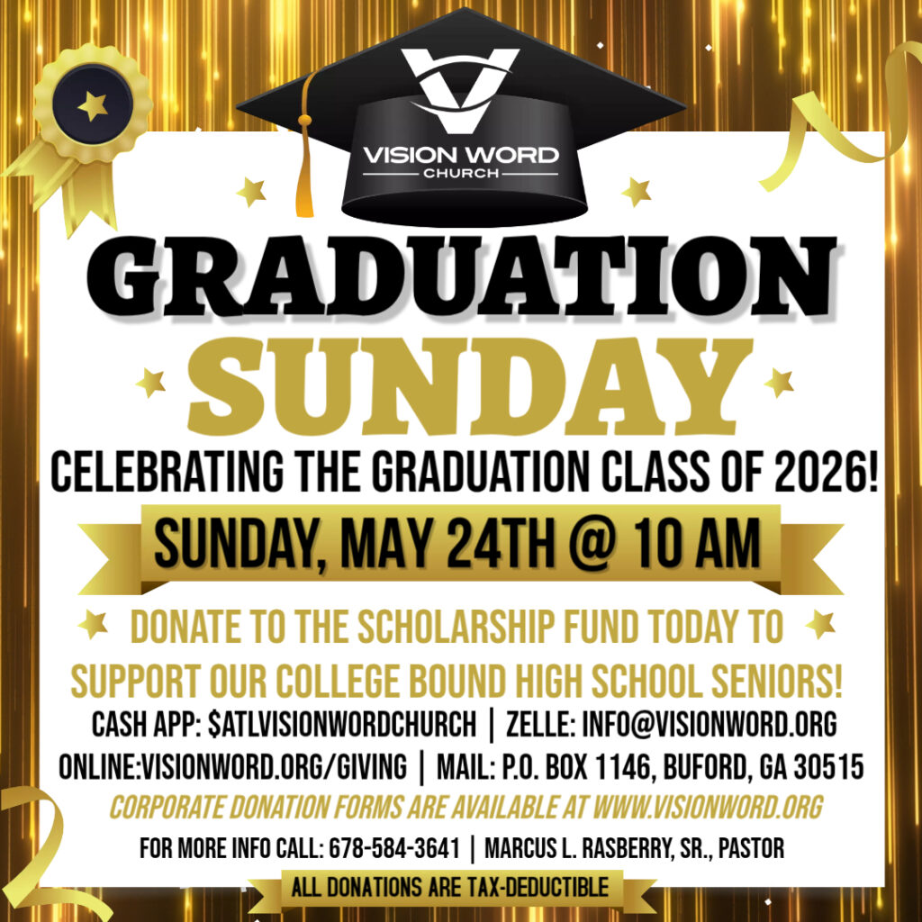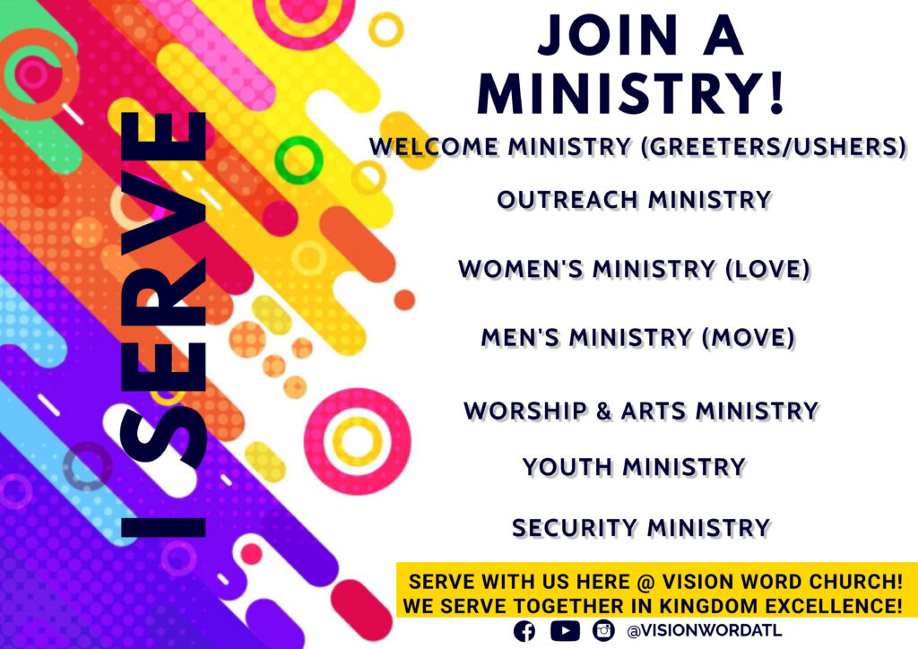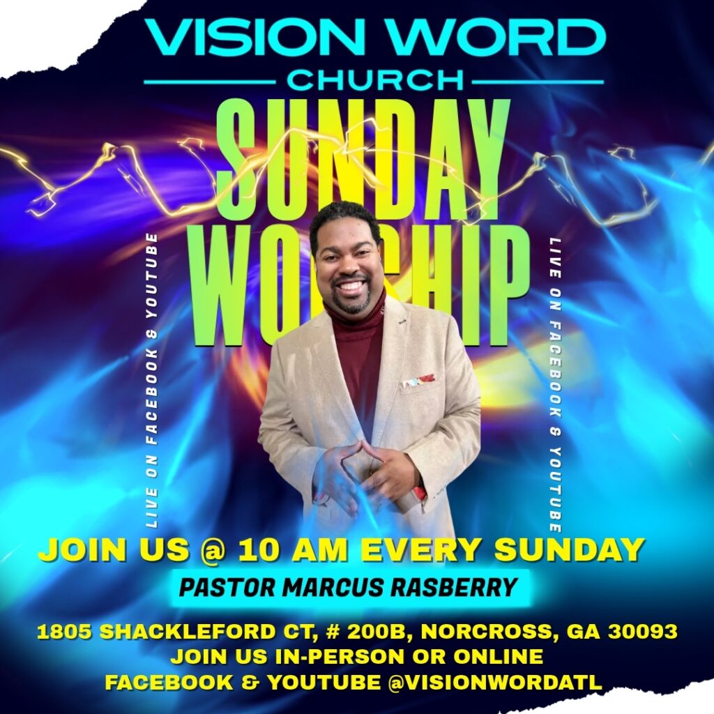 Sunday Worship Service @ 10:00 AM In-Person & Online Facebook & YouTube @visionwordatl Children's Church (Pre-K-8th Grade)